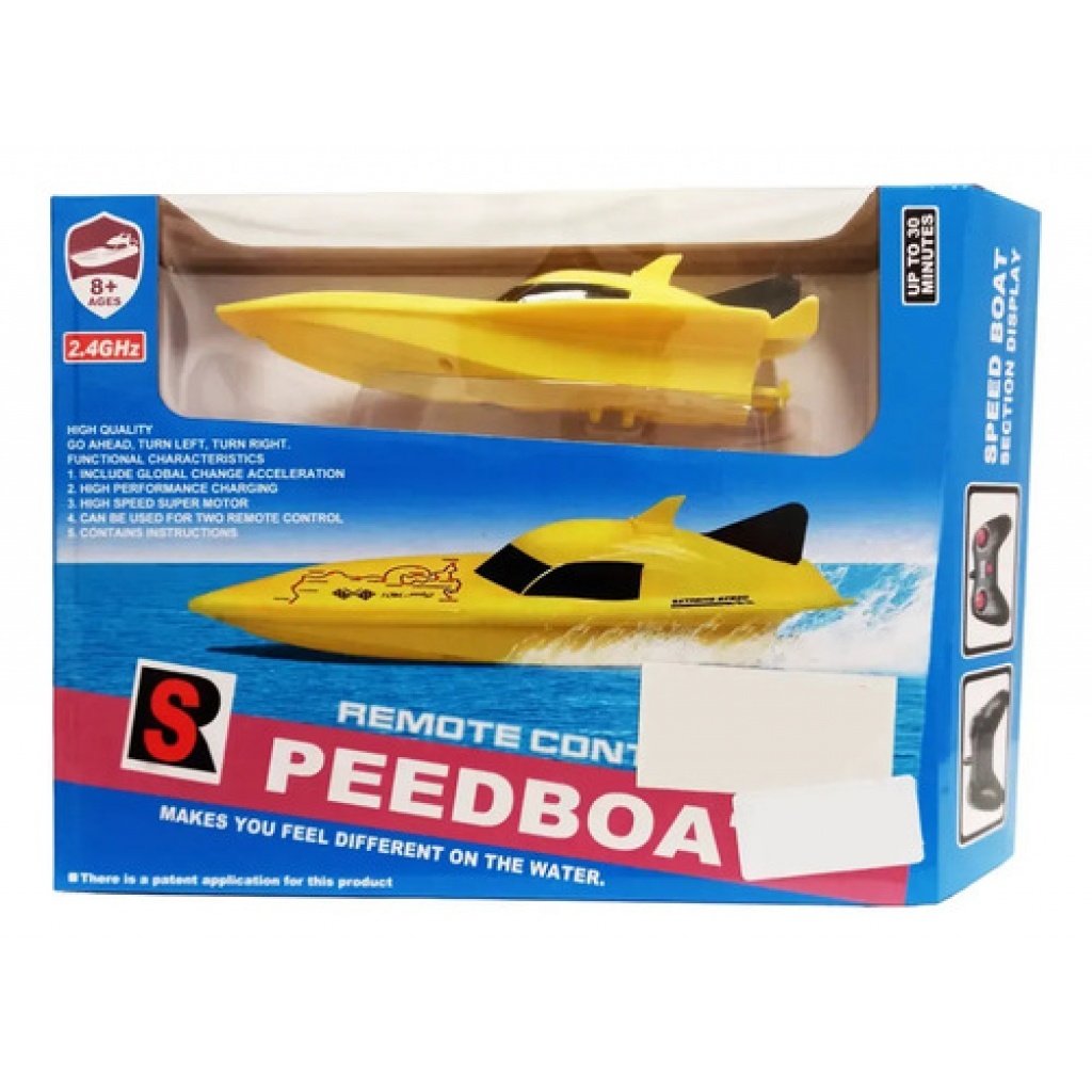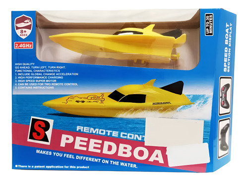 LANCHA CONTROL REMOTO RECARGABLE COLOR AMARILLO +8 100A4