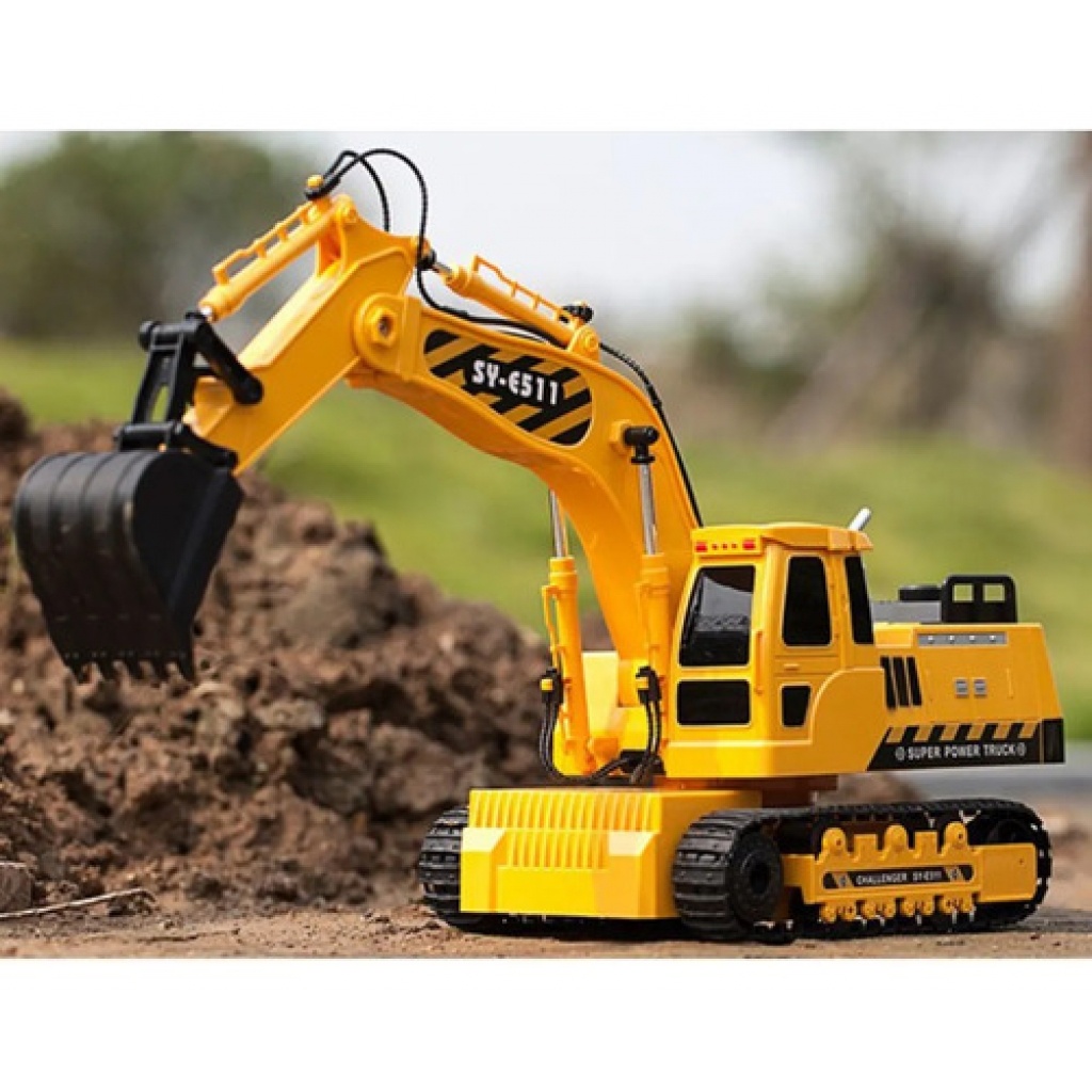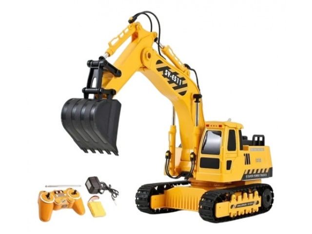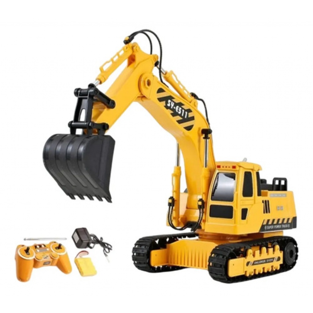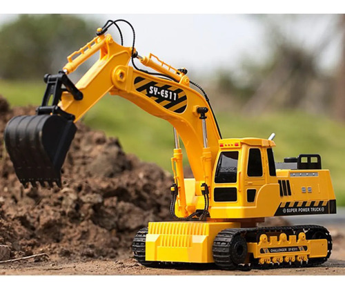 De color amarillo, la excavadora a control remoto se presenta como un completo Toy. Muy funcional, esta excavadora se mueve hacia adelante, hacia atrás, gira a cada lado; su cabina puede girar 360°; en cuanto a su pala, ¡cava y vacía para un trabajo perfecto!