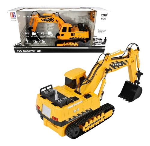 Incluye pilas: No. Línea: RC Excavadora. Fabricante: Double e. Edad máxima recomendada: 99 años. Edad mínima recomendada: 8 años. Modelo: E511-003. Edad recomendada: 9-12 años. Cantidad de pilas del control remoto: 2. Tipo de pilas del control remoto: AA. Tipo de alimentación del control remoto: Pilas. Escala: 1:20. Clasificación del vehículo: Excavadora. Tipo de alimentación del vehículo: Batería.