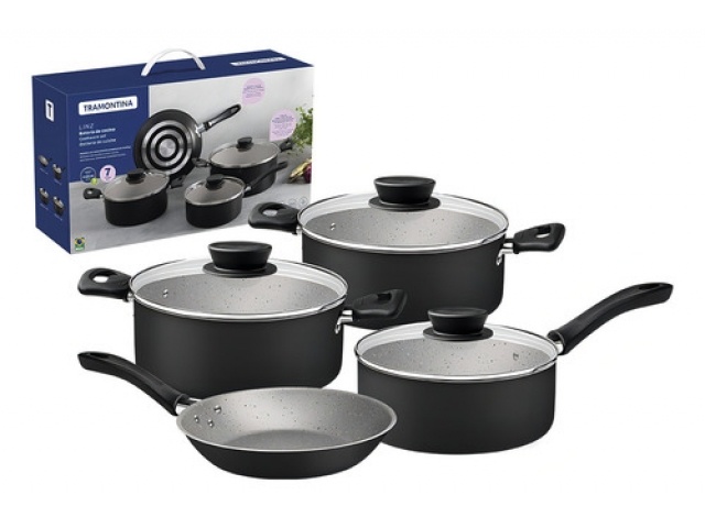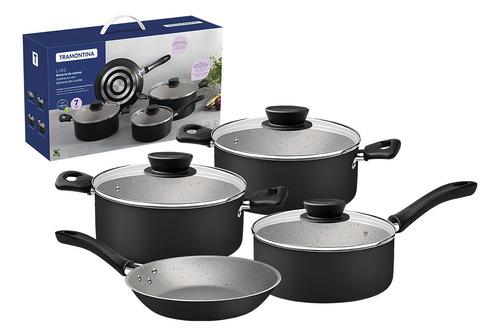 Batería De Cocina 7pz. Linz Negro Tramontina 28299/008 Eh, Hogar, Muebles y Jardín, Bazar y Cocina, Cocción y Horneado, Baterías de Cocina, Juegos de Batería, Es un kit de fábrica Sí, Apto para hornal